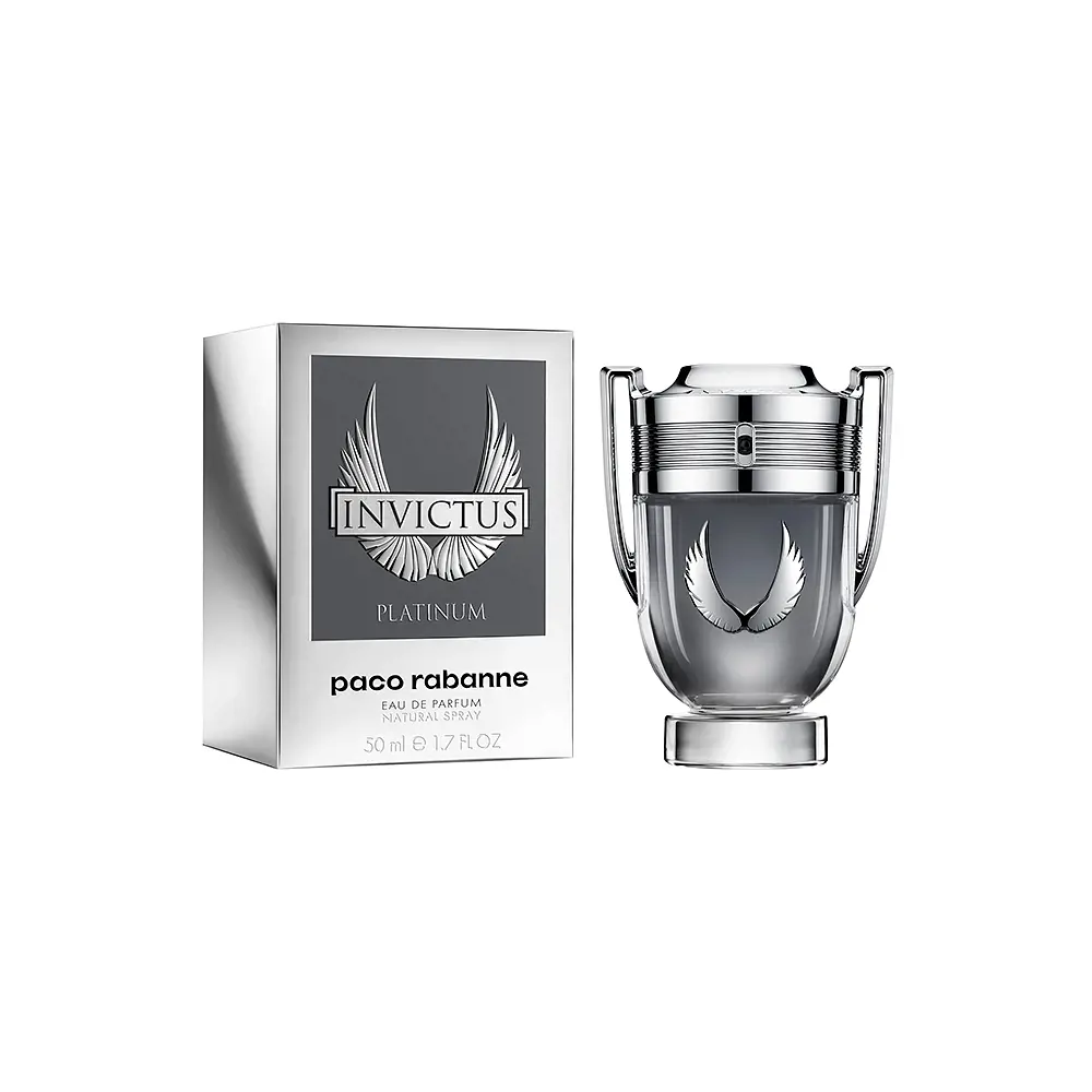 Với thiết kế chai hình chiếc cúp màu vàng kim, Invictus Platinium không chỉ là một mùi hương, mà còn đẳng cấp, quyền lực và chiến thắng.